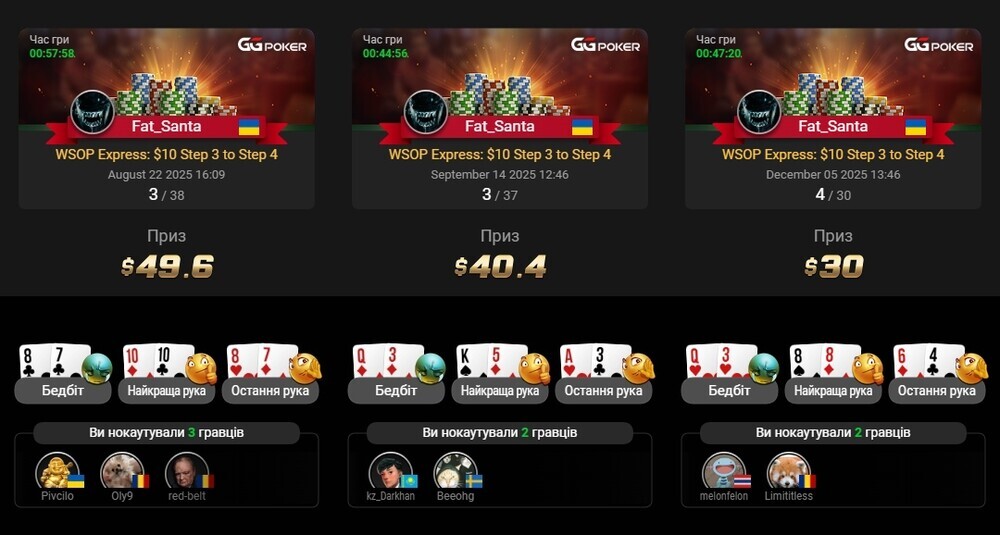 Та ще й отримав непогані плюшки🤑 Перші два турніри 10$WSOP Expres Step 3 - відверто зливав, щоб отримати кеш💰, а потім коли дізнався що квиток $150 WSOP Expres Step 4 можна використати в GGMASTERS 150$, дуже про це сильно жалкував, адже отримати такі шанси майже на халяву, дорого коштує. Л.О.Х.