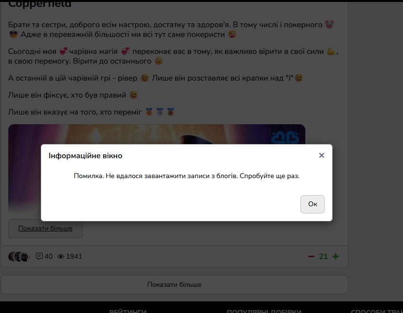 Вітаю, всіх учасників пошуку скарбів) підказка про яку ніхто не просив) бо завтра будуть вже нові коди) другий код схований в блогах за 2024 про покер. Гадаю ця підказка допоможе знайти другий код)