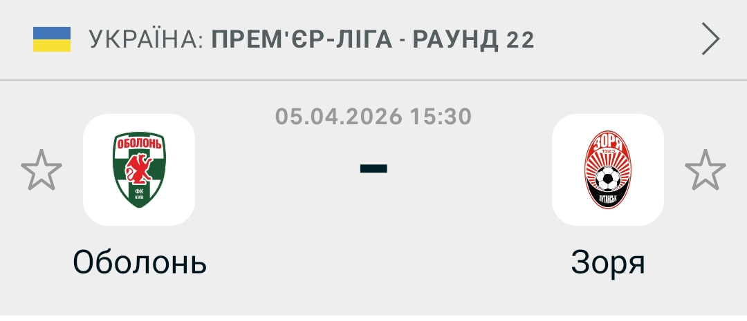 🇺🇦 Оболонь-Бровар Київ - Зоря Луганськ