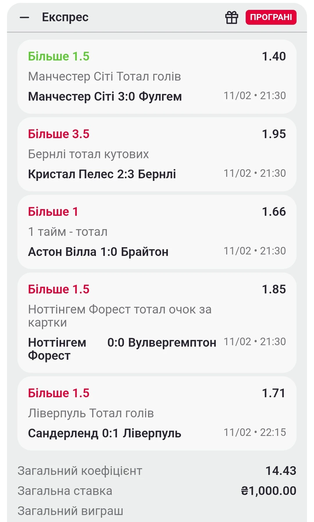 Цього разу зібрав потужний експрес із коефіцієнтом 14.43.