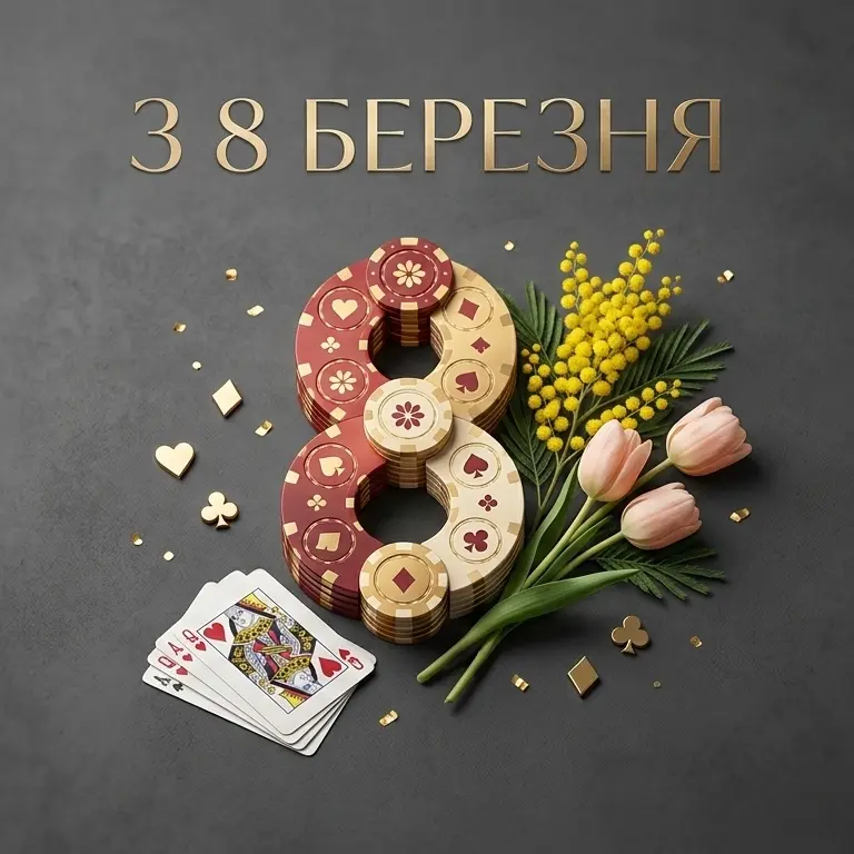 Дорогі наші Дівчата! Вітаю з 8 Березня! Бажаю Вам грати по-великому💪, ніколи не блефувати у коханні❤️ та завжди тримати ситуацію під контролем✊. Нехай Ваша врода буде Вашим головним козирем😍 а доля дарує лише виграшні комбінації!🤩 Любові, удачі та фішок повні кишені!🤑