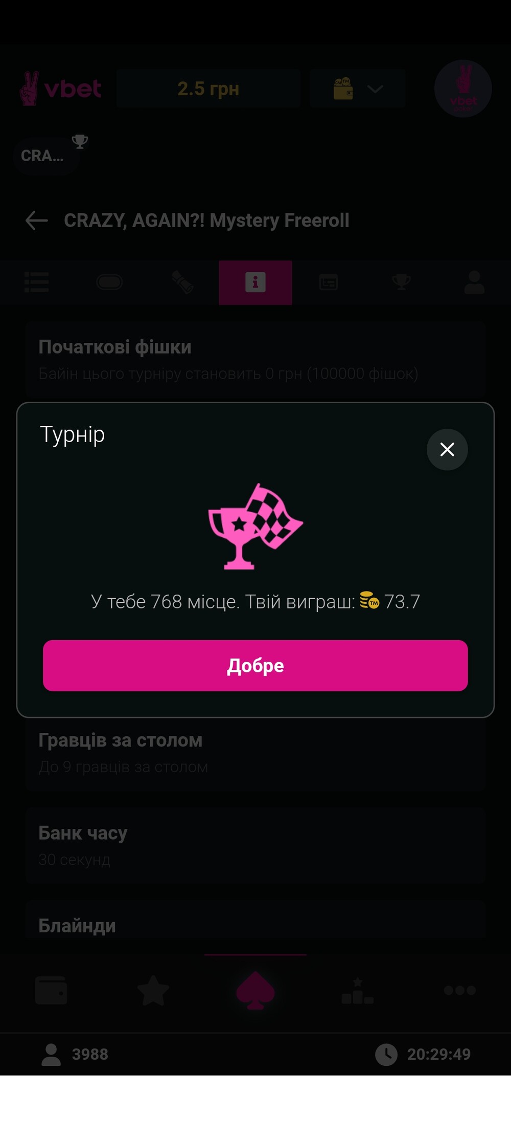 Другий турнір навіть скріни не встигла зробити, а я вже встигла вилетіти 😁