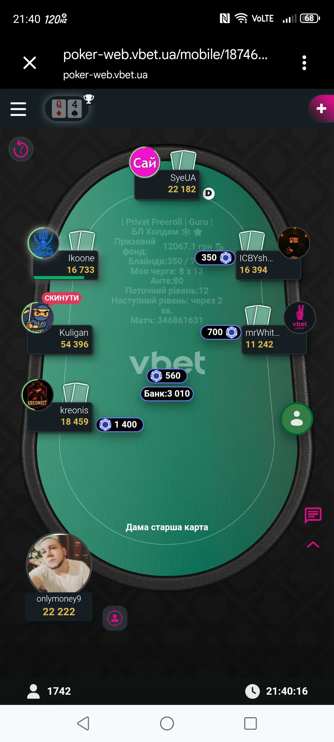 То Ти добре граєш у багатьох турнірах.А в Хомках зібралися Профі з профі особливо в Гуру.Тут буде важко.