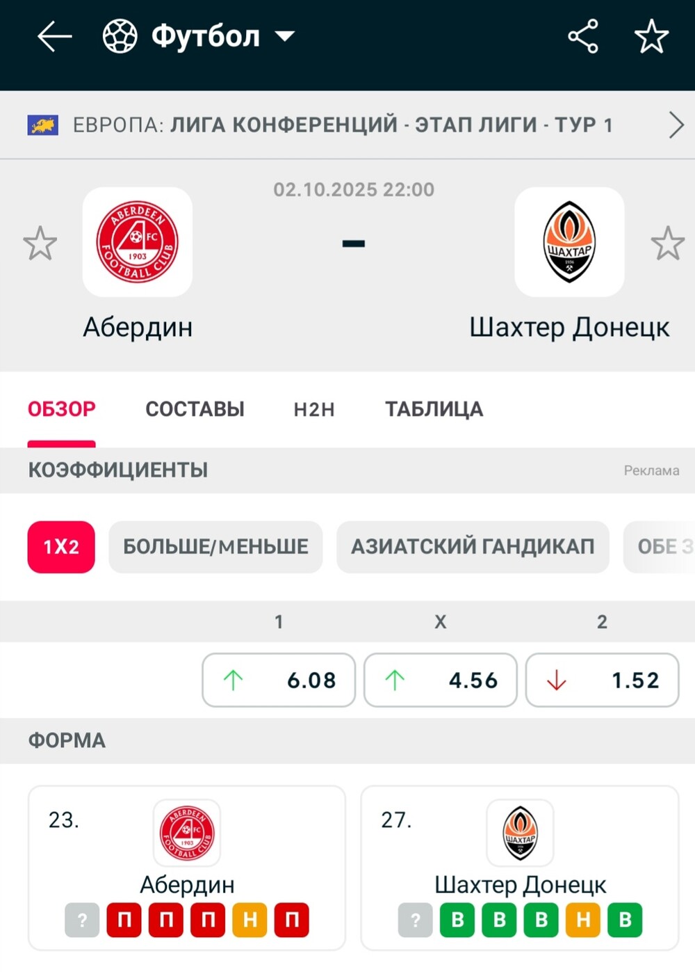 Чудовий прогноз👍💪 Абердін дуже рідко забиває, а Шахтар останнім часом полюбляє грати на нуль😉