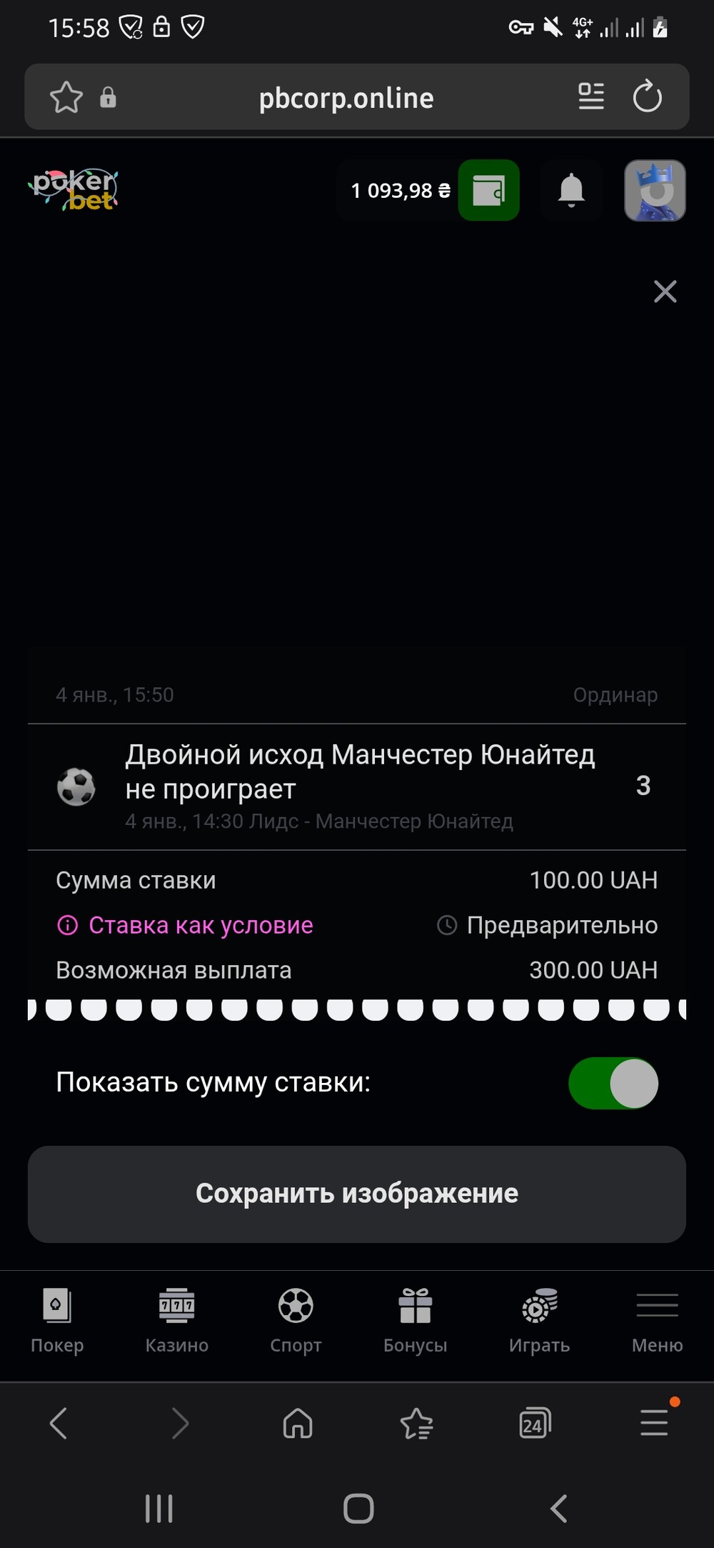 Давненько ,я не робив свою рубрику про спорт (ставочкі),хоча ставлю доволі часто,на днях,втащив таку ставочку: