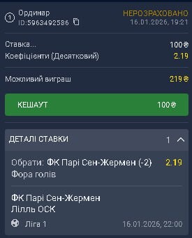 Тому мій прогноз фора мінус 2 на Париж за кеф 2,48