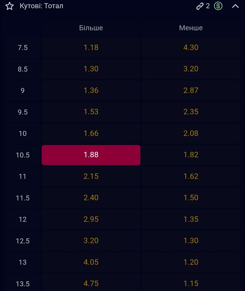 Тому мій прогноз тотал більше 10,5 кутових в матчі
