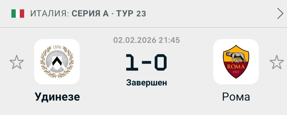 Так,матч з Міланом був гарний,але удінезе теж грає вдома добре,це була помилка лізти в Рому победу,бо фаворити вони були ток на бумажці,а по ділу удінезе їх з'їв