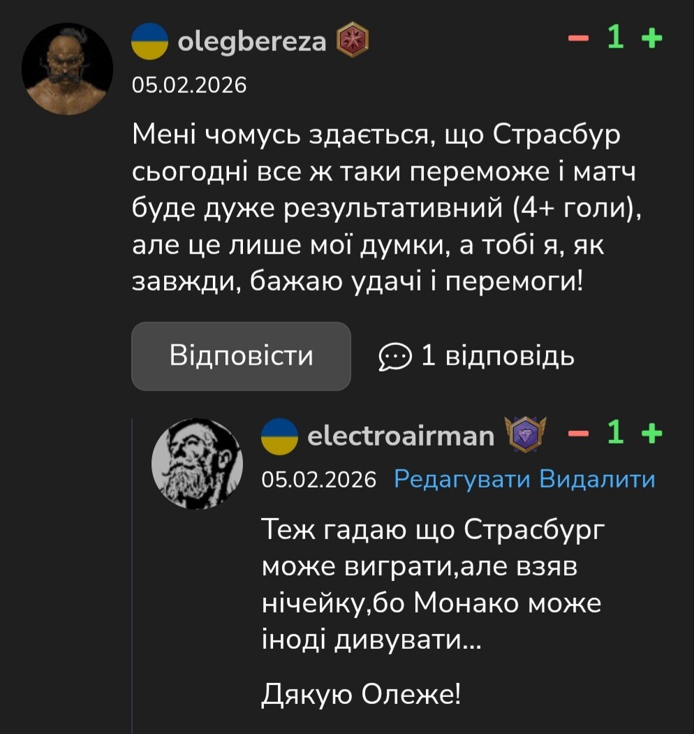 Цікавий прогноз, не думаю, що буде нічія. Бажаю тільки виграшу👍👍