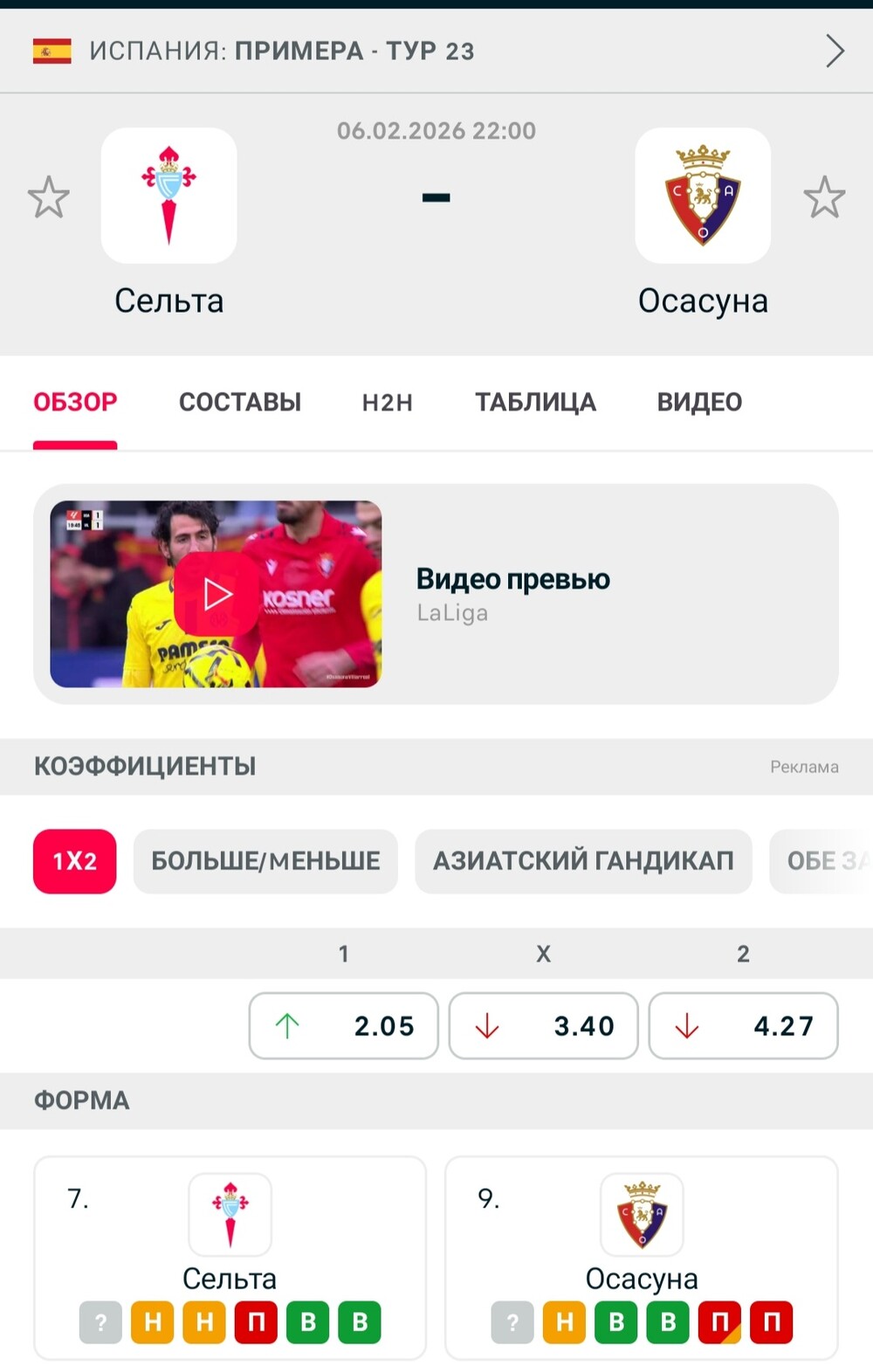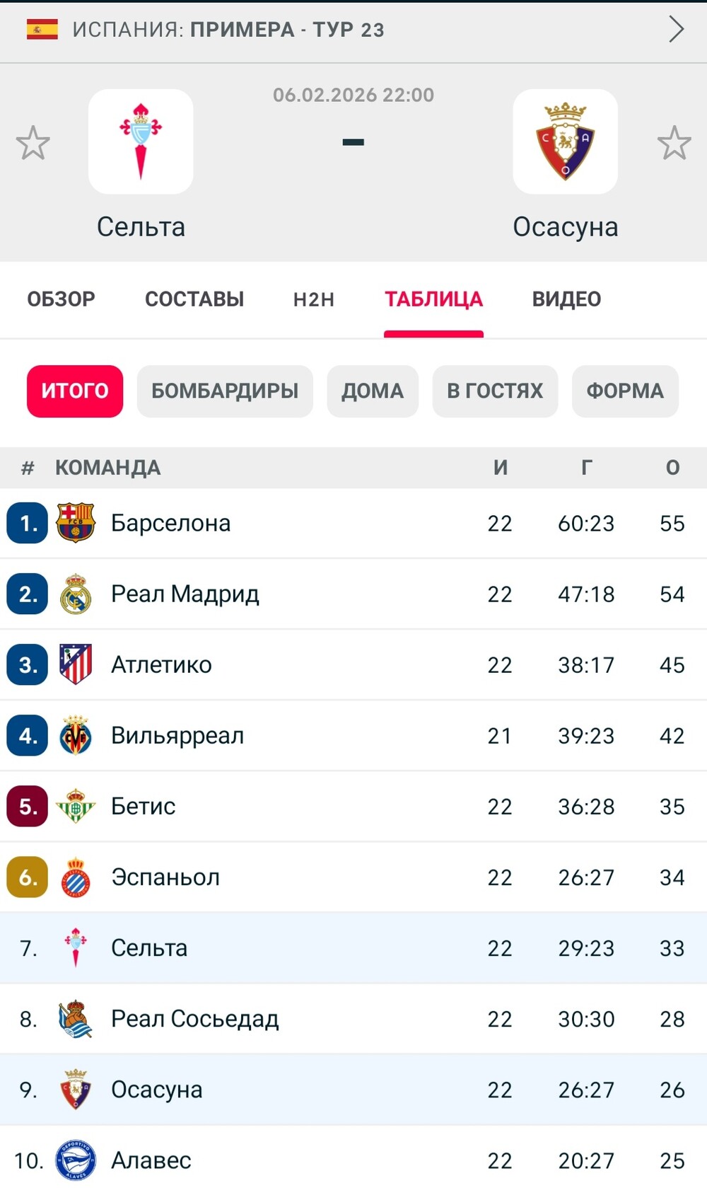 У 23-му турі Ла Ліги розгорнеться інтригуюче протистояння: "Сельта", яка займає сьоме місце, приймає дев'яту команду чемпіонату - "Осасуну".