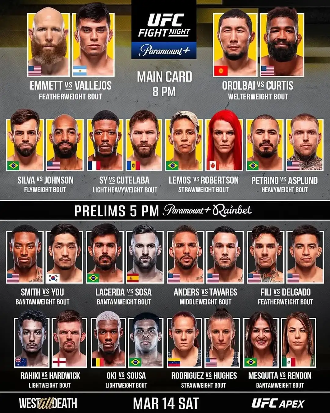 Цими вихідними 14-15 березня UFC повертається до Apex, і кард виглядає максимально голодним. Жодних зайвих слів, тільки чиста енергія в октагоні!