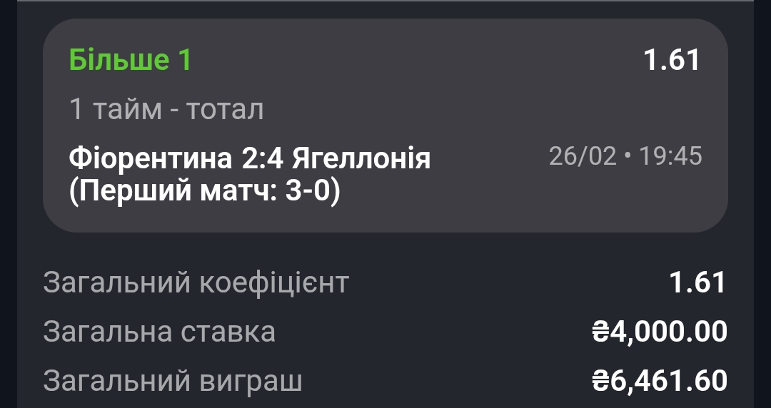 Непогано зіграно! Бажаю вдачі у наступних прогнозах!