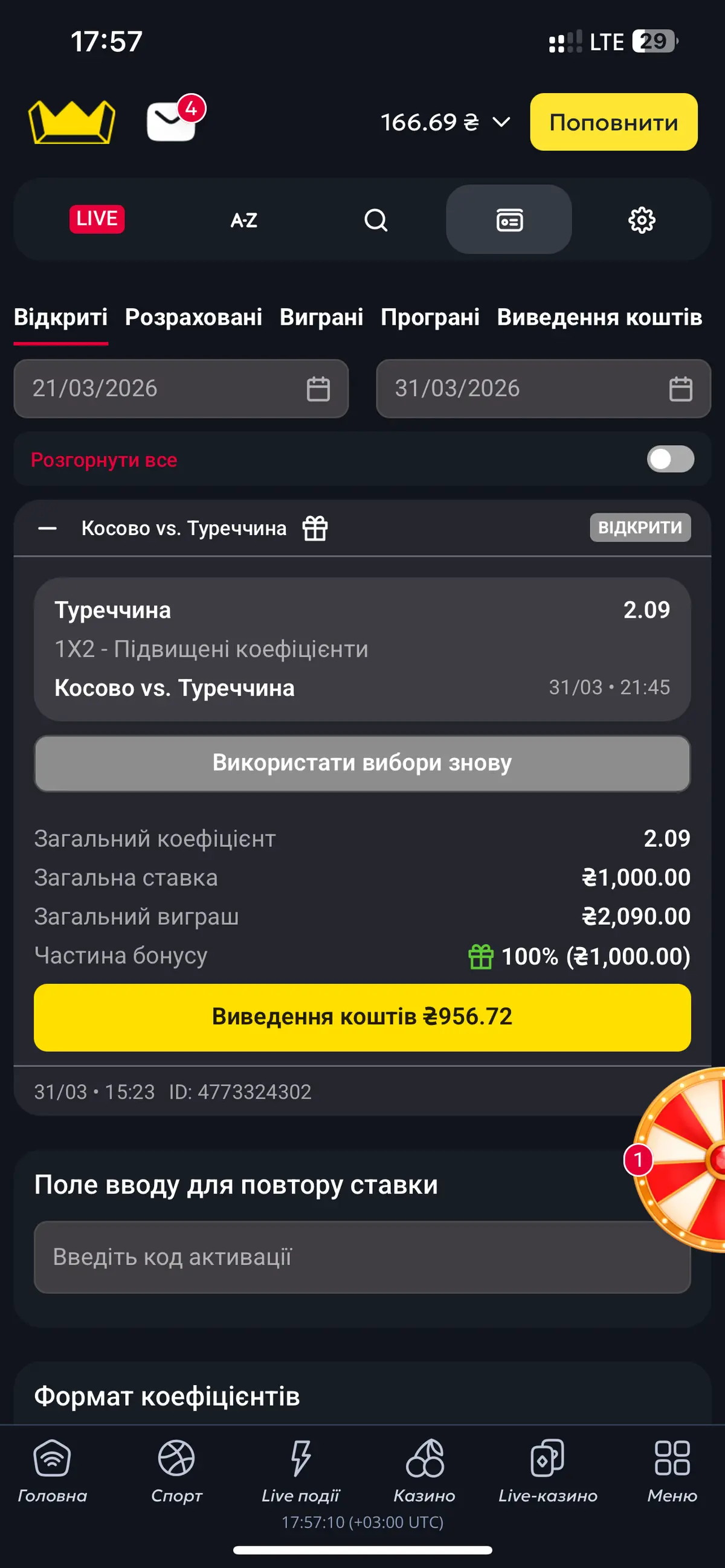 Ймовірний рахунок: 1:2