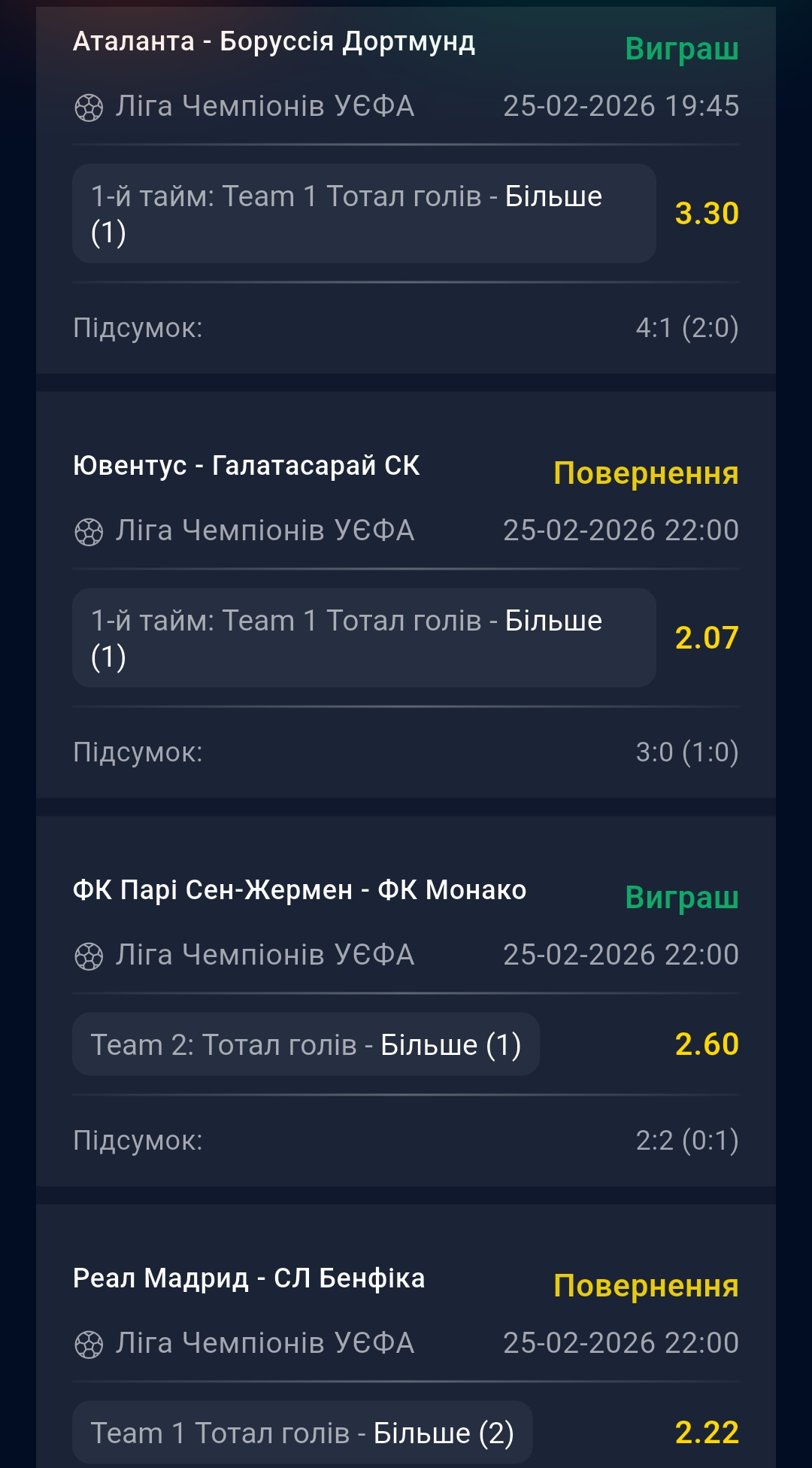 🔥 Звіт про вчорашні матчі ЛЧ⚽