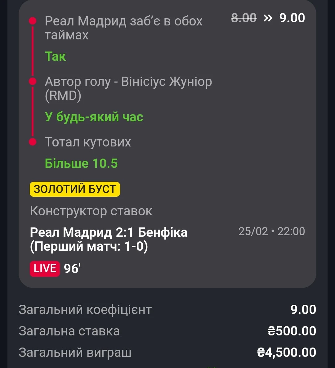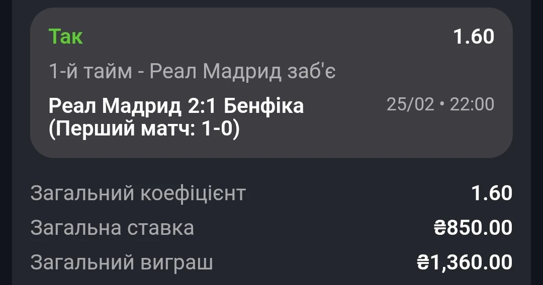 Тут поставив на картку Борусії в першому таймі і це було легко 🍀
