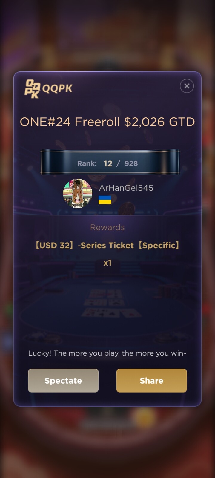 ONE#24 Freeroll $2026 GTD - 12 місце квиток за 32$