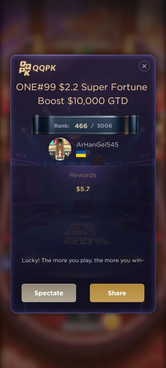 $2.2 Super Fortune Boost $10000 GTD - 466/3008 5.7$