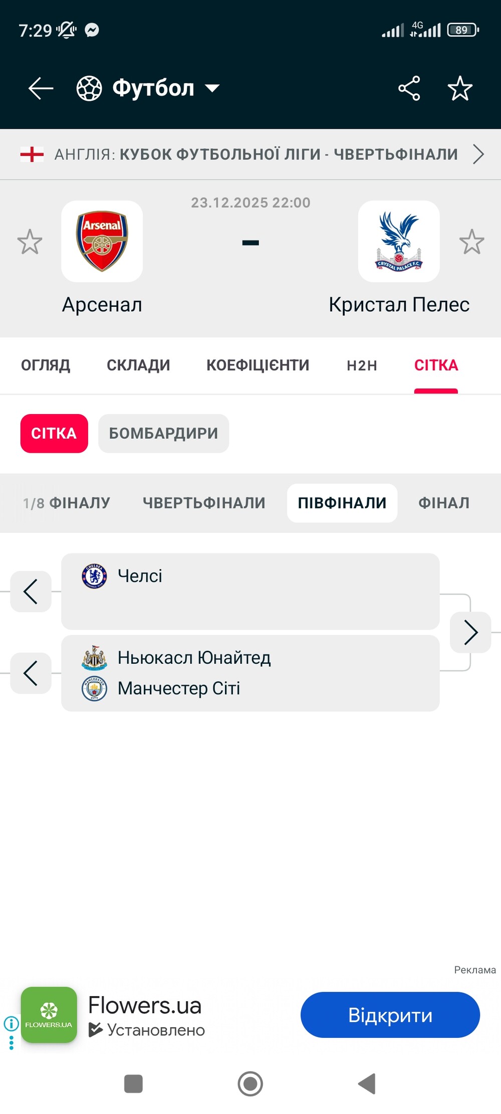 1/4 кубка Ліги Арсенал - Кристал Пелес