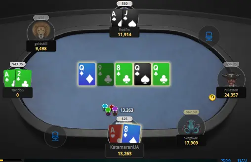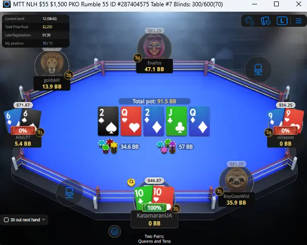 ну і карта, як на мене, дуже ок для мультиАІ. і руки опи засвітили практично ідеальні для JTs, а от з дошкою не склалося.