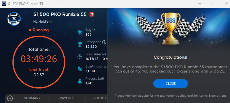 $1500 PKO rumble на 888 за $55