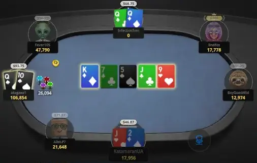 якшо правильно пам'ятаю, грався 5мах стіл, який в моменті весь сидів зі стеками ~10-15бб. остання роздача 1-го дня. переді мною 2бб опен. бачу QQ.