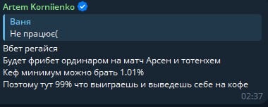 у мене безпрограшний варіант був), або на Арс мінус 1 фора, або на Тот + 1,5 фора, я перестраховщік в ставках) халявних