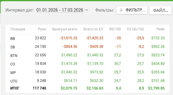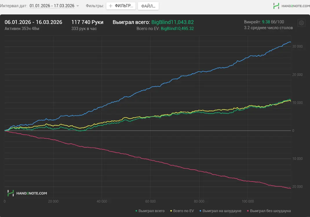 Привіт, я в покері з 2016-го, але на cardmates вперше😁 За довгі 10 років гри пройшов ліміти від нл2 до нл200. На даний момент регулярно катаю мікс лімітів від нл20 до нл50 з непоганими вінрейтами.