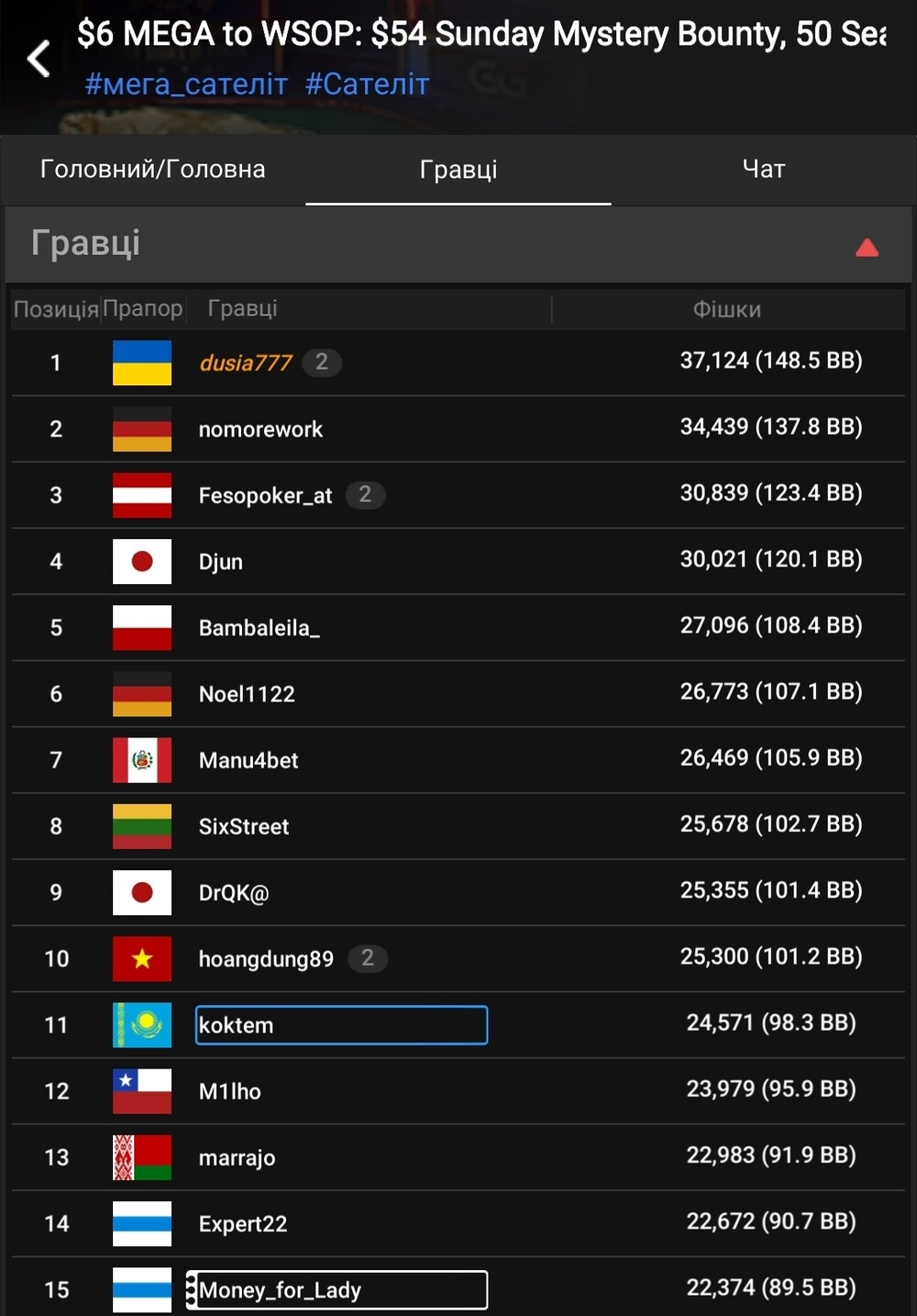 Його "годували" фішками всі і з обох рук. Саме тому він дуже швидко всіх перегнав в чіп-каунті, а ми з Андрієм "Комарем" намагались не відставати
