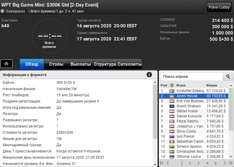 Андрій Новак став ранер-апом WPT Big Game Mini на PartyPoker
