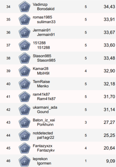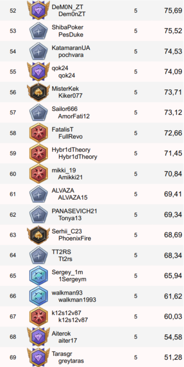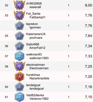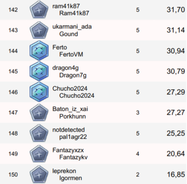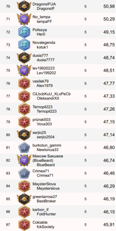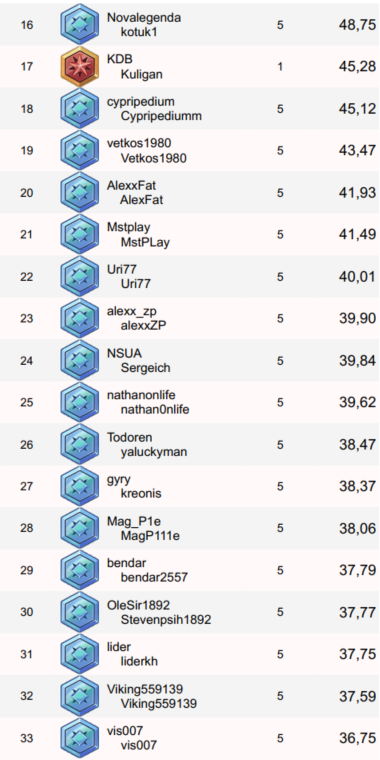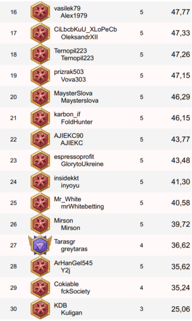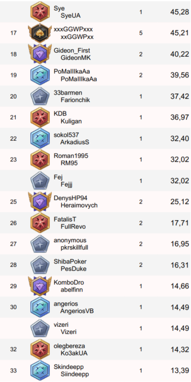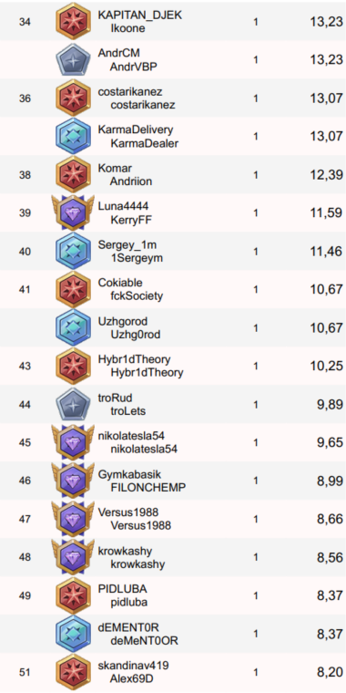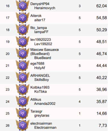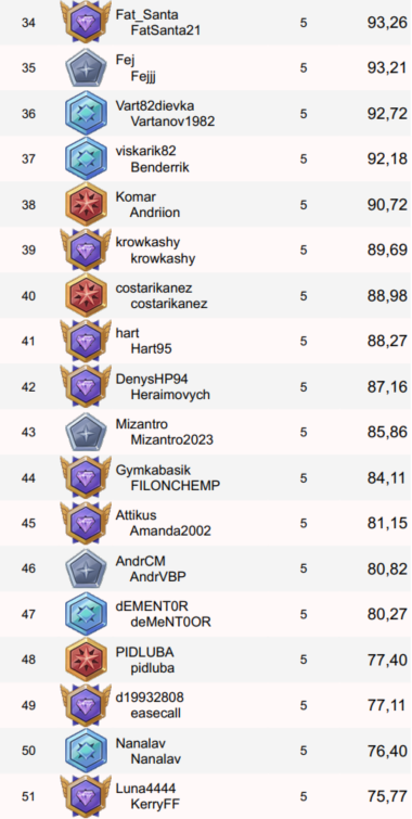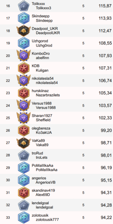 Вітаю кращих гравців та призерів, еххх одного балу не вистачило щоб запригнути в топ 25)))🥹