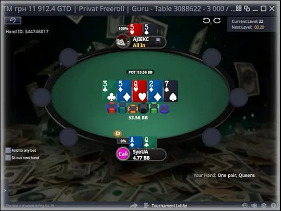 Коли почався прямий бабл, трапилася ключова для мене роздача, в якій я пішов на сумнівний блеф. А можливо, і не сумнівний, давайте розбиратися.