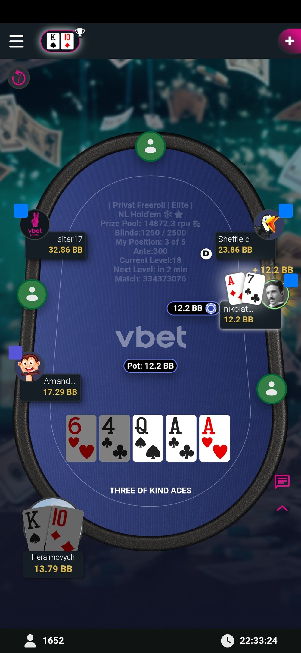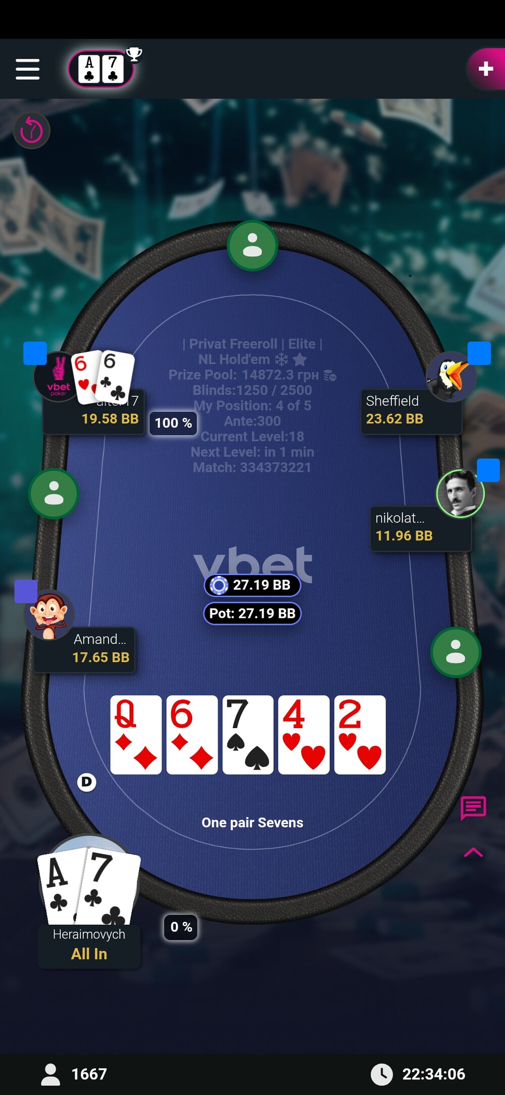 Запихнув на префлопі колл від ВБ і сет на флопі, а якже без нього.