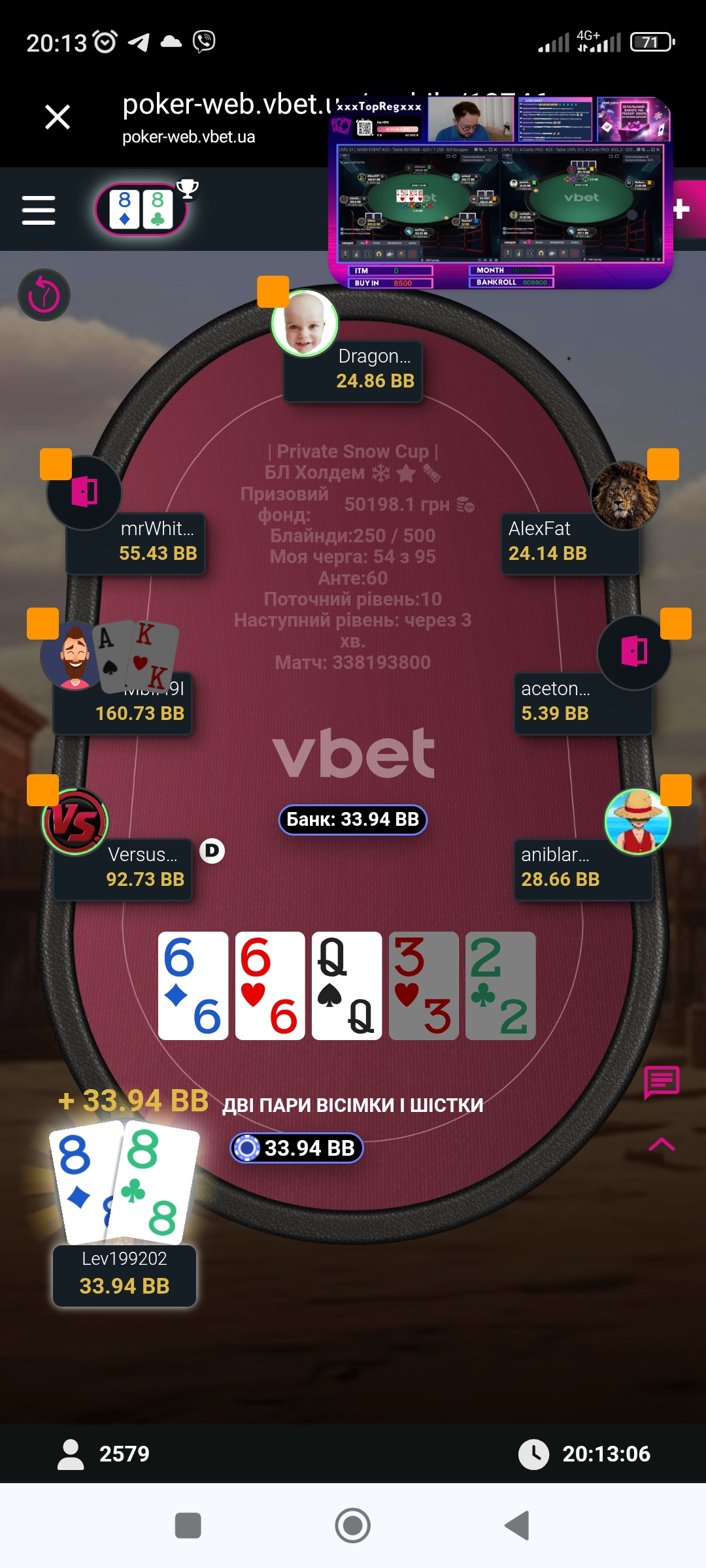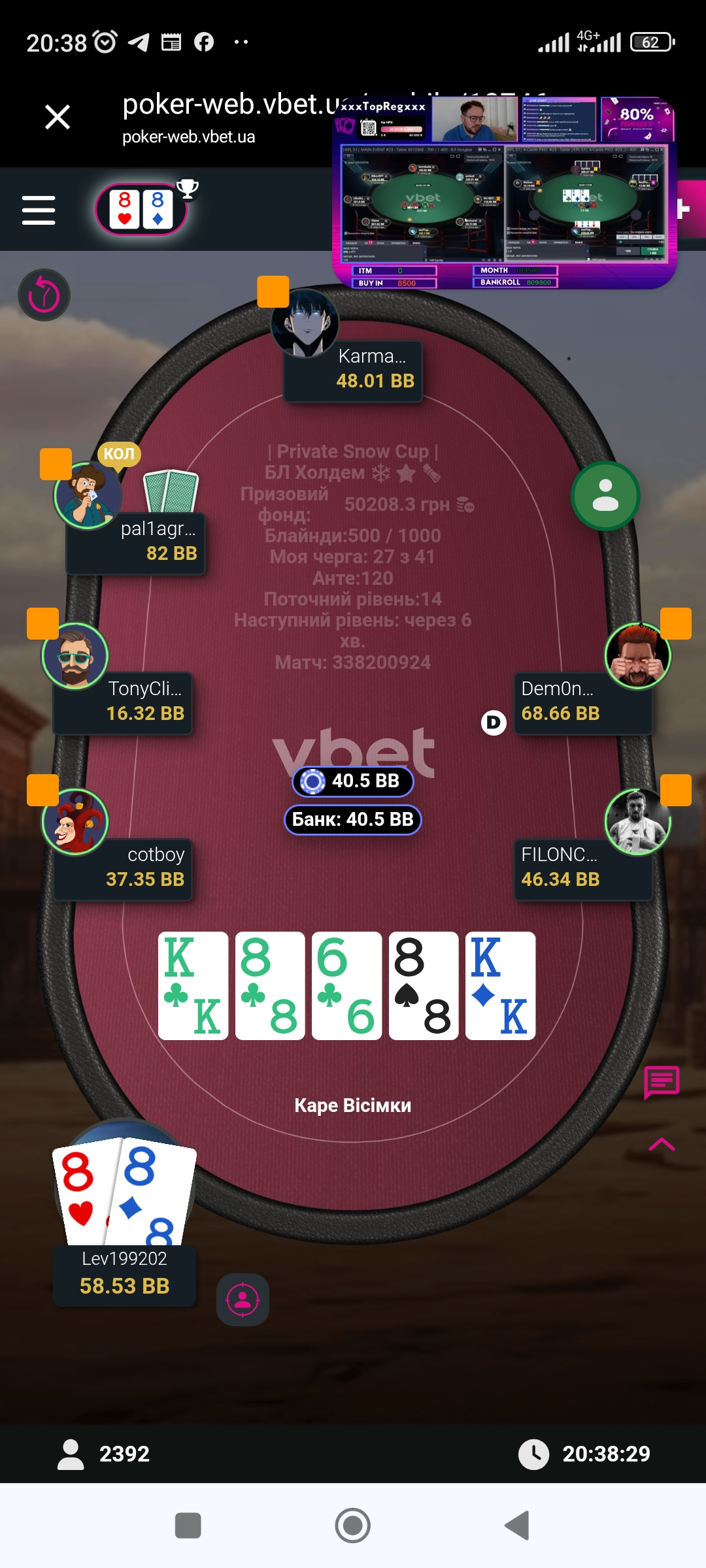 Пізніше сталась знову гарна роздача і знову у мене були кармані 88, та цього разу вони покликали ще 2 свої сестри