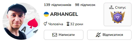 Артем ARHANGEL досвідчений аматор із Харкова (зараз проживає у Фінляндії), який у покері ще з 2011 року. Починав з офлайн-клубів міста, а зараз активно катає онлайн МТТ. Переможець зимового лідерборду "Гуру" 23-24 та автор персоніфікованих гіфок на Cardmates UA! 👍️
