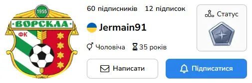 Jermain91 повернувся на сайт після 1,5-річної перерви. Наразі є регулярним учасником хомок у статусі Фанат, як Ворскла свого часу була постійним учасником найвищого дивізіону чемпіонату України. Команді бажаю вирішити свої труднощі, продовжити існування та повернутися до еліти, а Jermain91 зробити наступний крок і перейти зі статусу Фаната до Експертів 😉