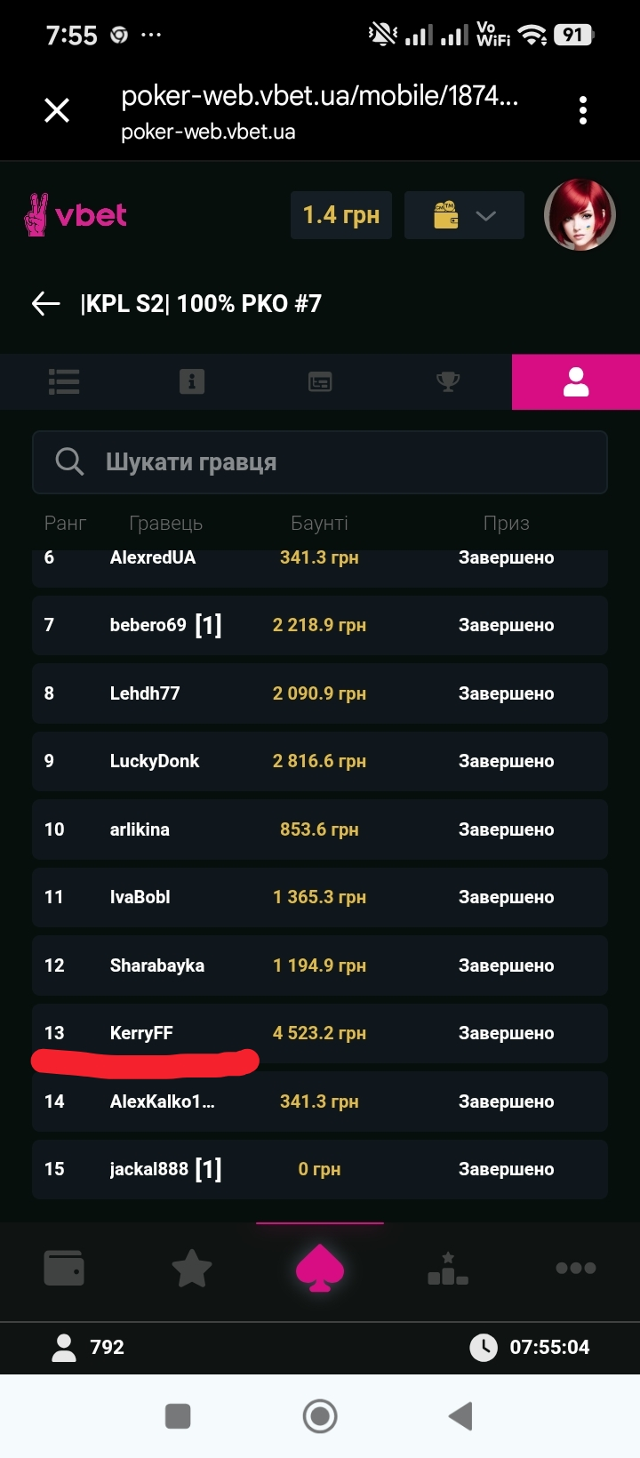 А далі..Я в топ 3,і маючи баунті тільки 250 грн.Хоча за вибивання любого 1к на баланс..так і не спромігся.Але забрав терпимістю..