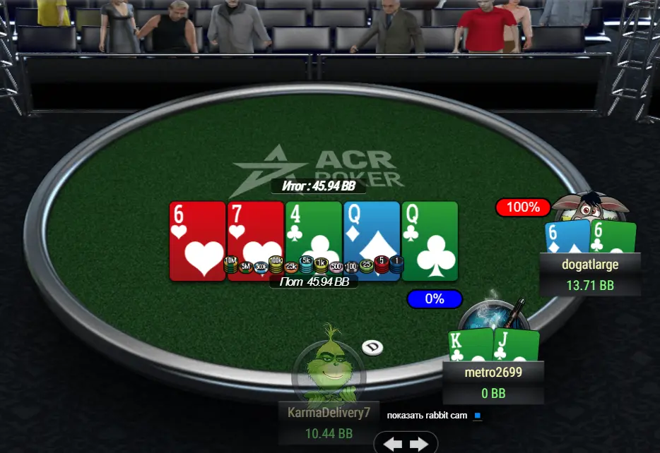 Ай, ой, стоп, зачекайте.🤔 А що це? Ви теж ЦЕ бачите?! (Невже моя майстерність дала тріщину?!) А, та ні, здалося – колимо наших леді префлоп і даємо опоненту топ пару з гатшотом, але щоб не закрило, це ж саме собою зрозуміло.