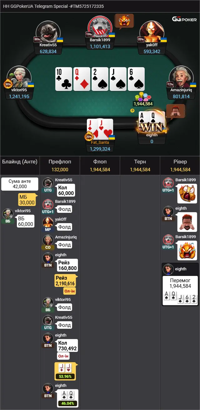 🎈Ще одна цікава роздача відбулась за фінальним столом в 6-мах: