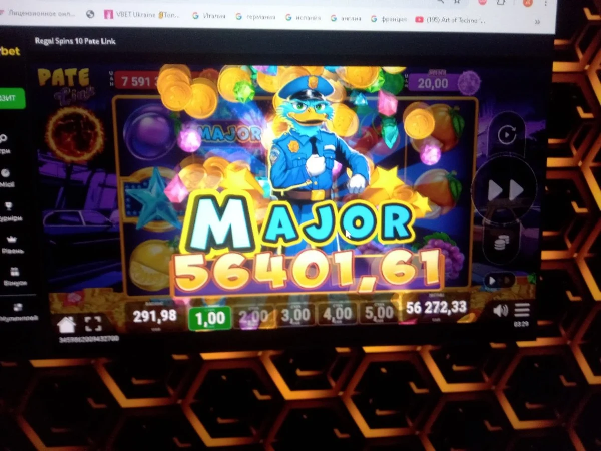 Натискав навмання один слот другий третій четвертий і тиша мінусує , і ось залишається десь біля 400 зайшов у цей з качкою думаю як раз крайній він буде на 100грн , дійшов до 300 думаю зараз ось ось вибухне кулька треба дотискати😁 але вибухнув MAJOR 58K🫨