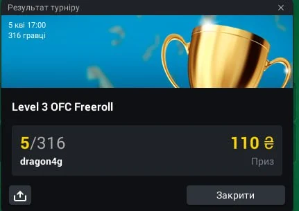 Але потім налагодилося , та посів п'яте місце отримав 110 гривень😁