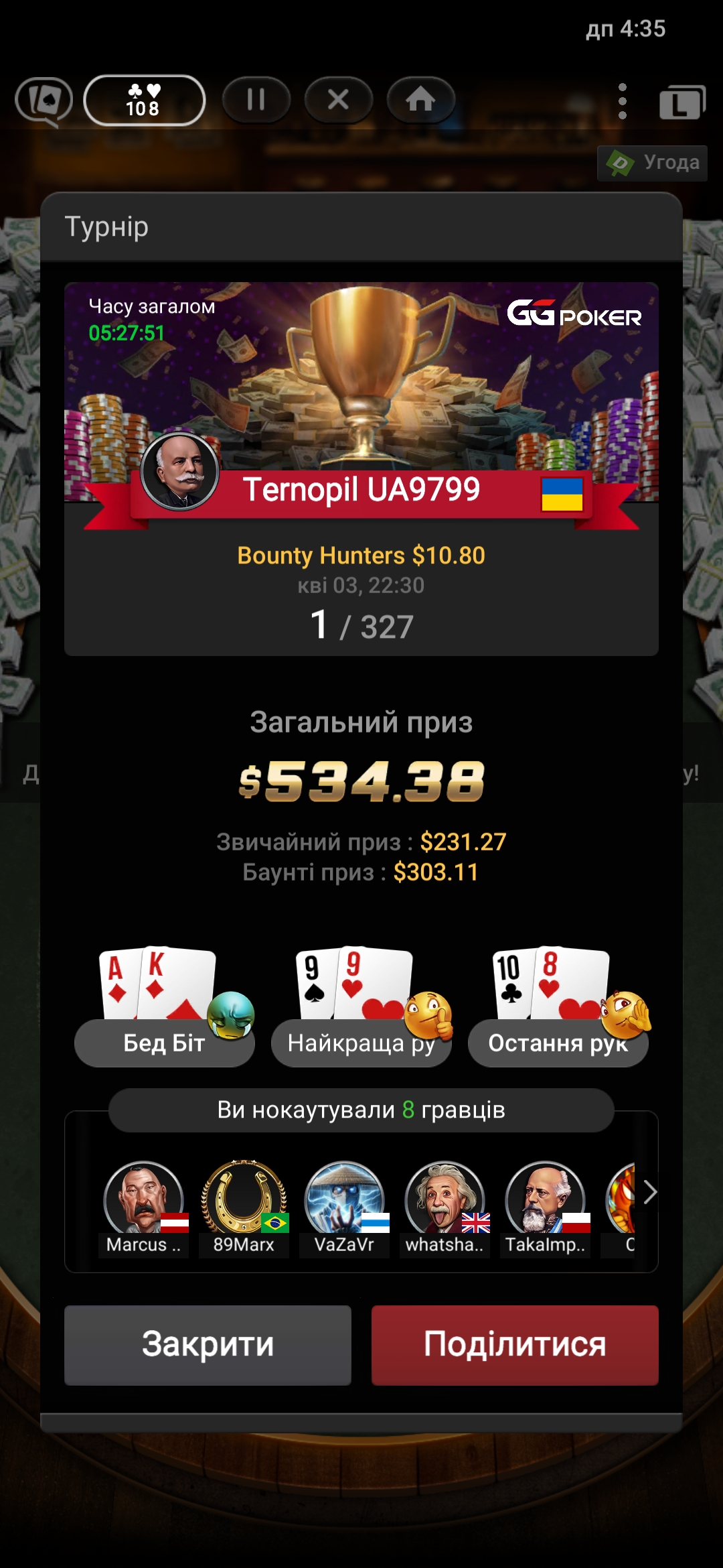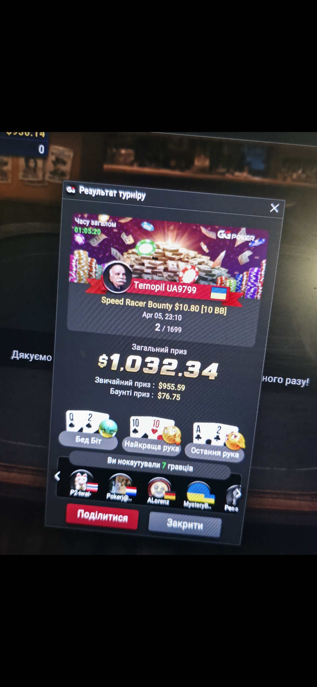 Було дуже багато роздач так як я забрав золото тому тільки вирішальний скрін)))