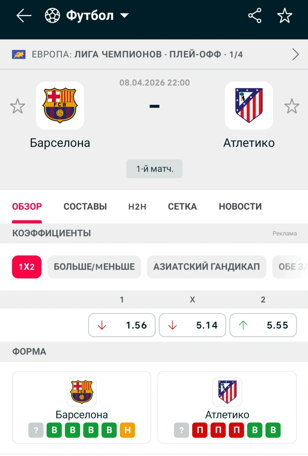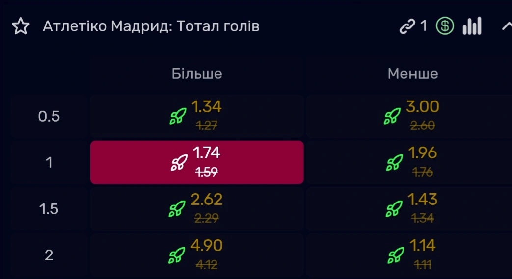 Мій прогноз тотал більше 1го гола від Атлетіко