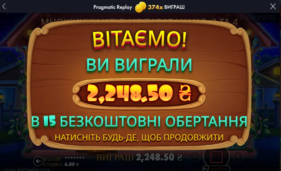 Перед основною стравою в мене бонуска по 6 грн. Так би мовити "Комплімент від Шефа" на 15 спінів: