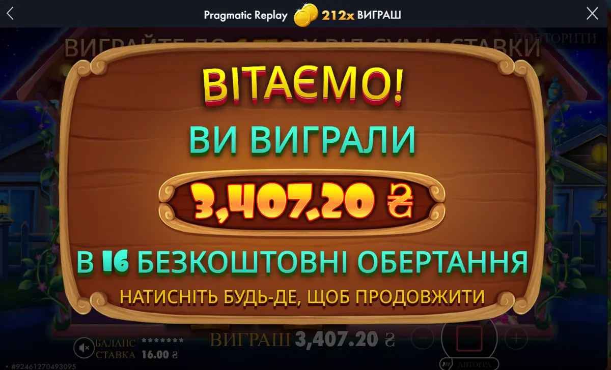 Подаємо першу страву. Я замовив бонус за 16 грн на 16 спінів: