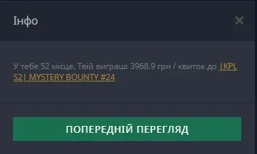 За моє виграшне місце, окрім грошей я отримав квиток на |KPL S2| Mystery Bounty #24 , що я пішов реалізовувати на наступний день.