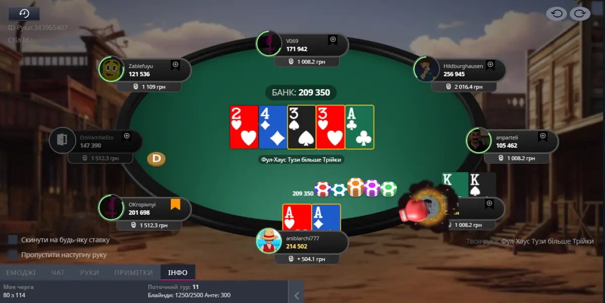 Проте стек ще є, гра продовжується😎 Далі ми з цим же опонентом поїхали AK в AK