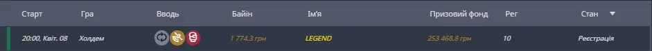 Тож сьогодні на мене очікує візит до турніру Legend за 1774 грн