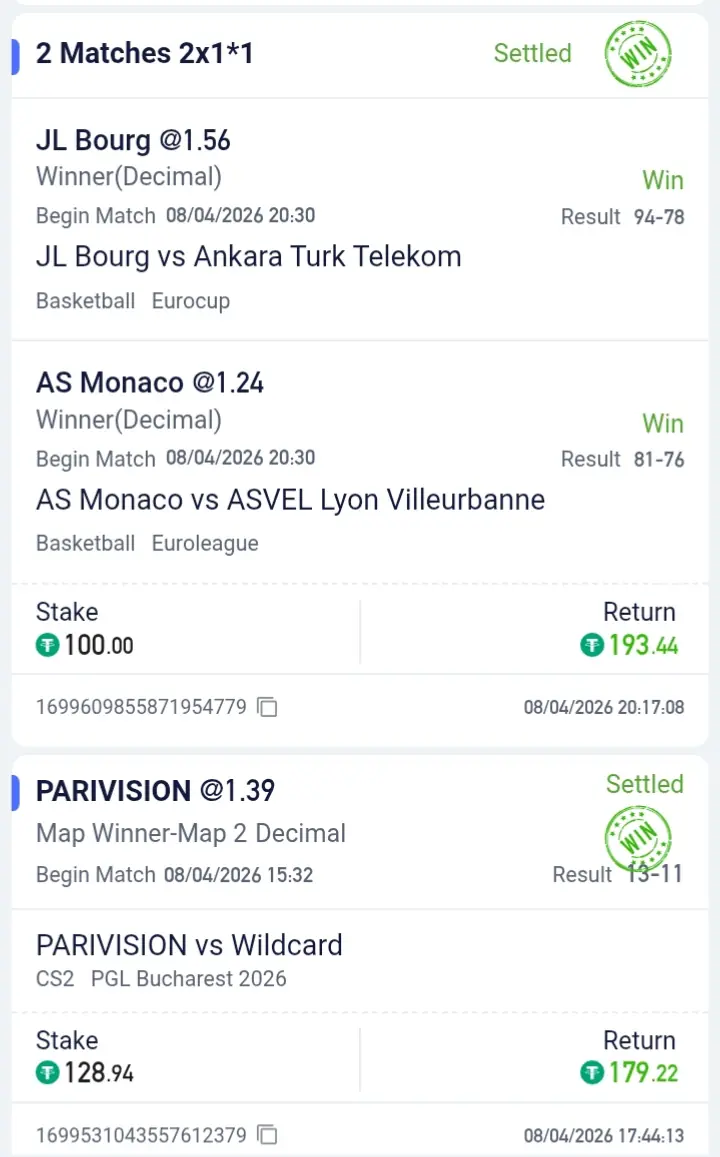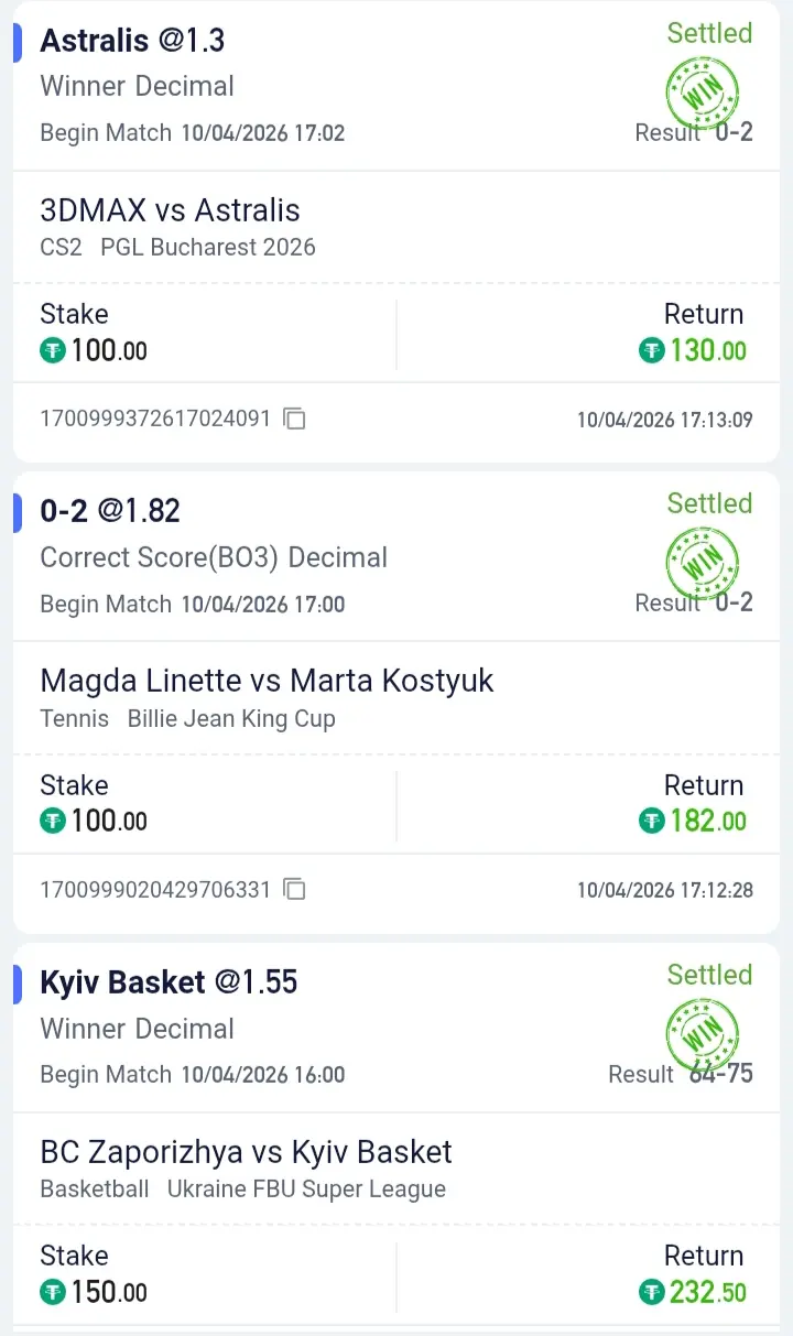 Найбільше було проставлено на кіберспорт і баскетбол. Футболу було не багато. 2 ставки було на теніс.