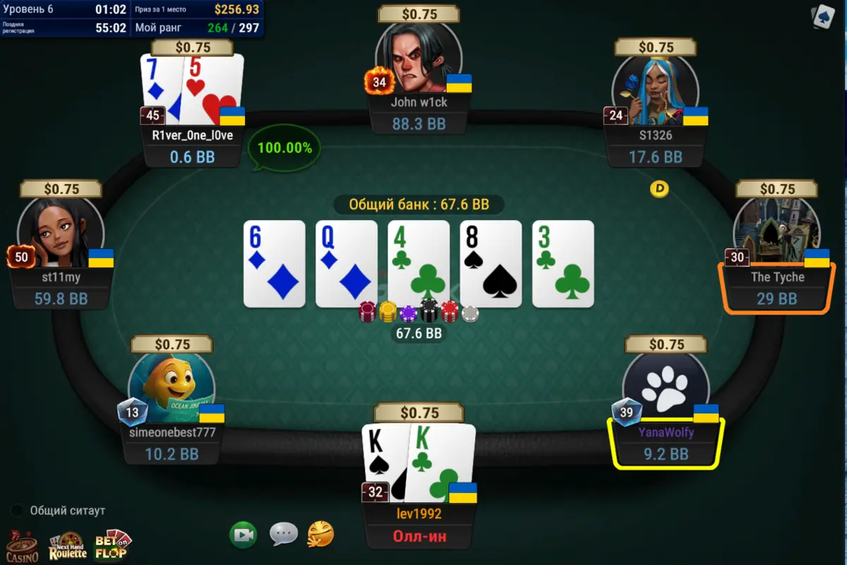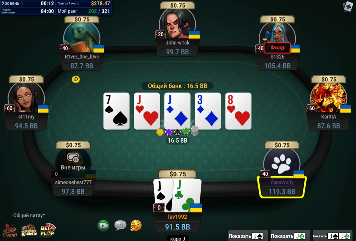 Почну з вчорашнього стрімерського турніра де на початку гри вдалось навіть зібрати каре з флопа