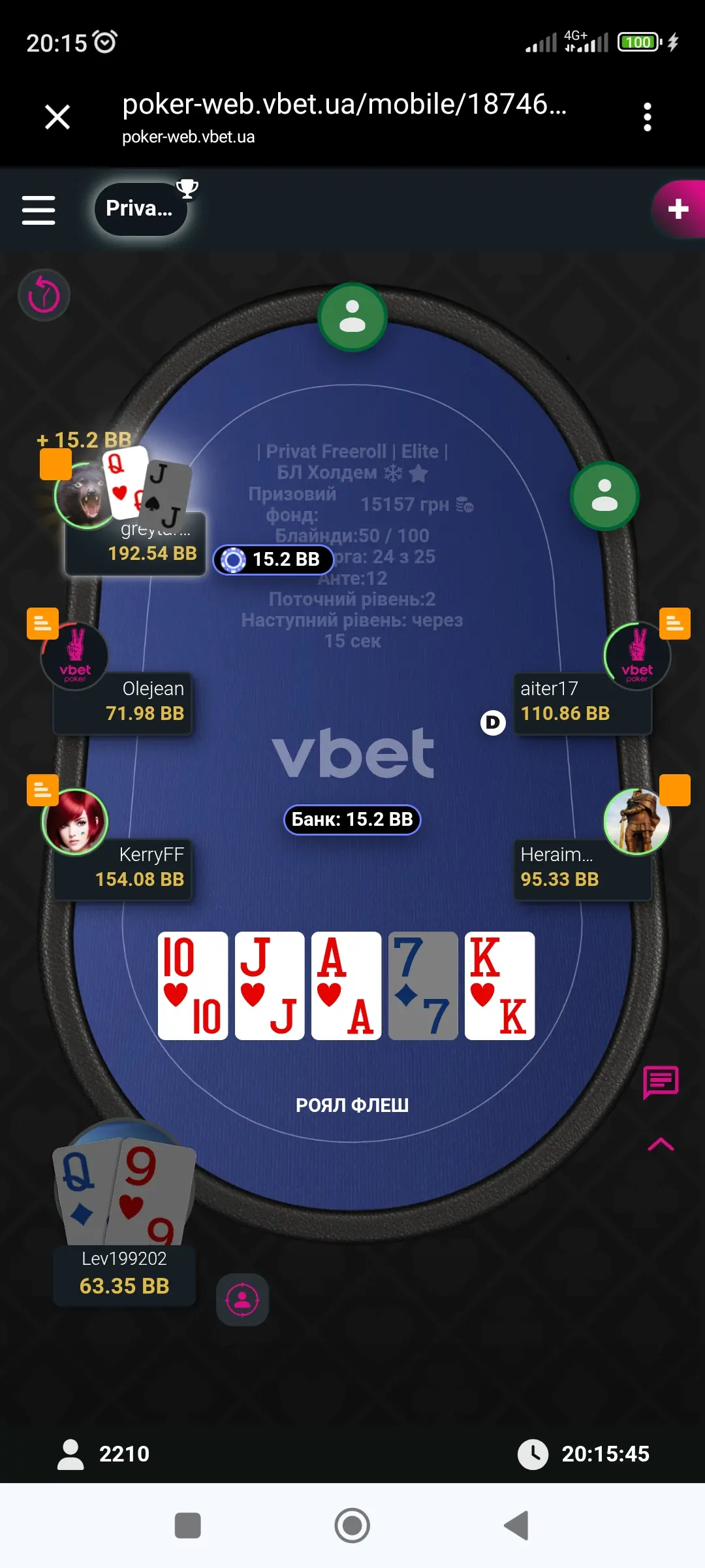 Виставився декілька разів підряд і став 2-м, і ось тут дійсно думав дочекатися ТОП-3, але ця помилка дорого коштувала. Гравці обмінювалися стеками, тільки я участі в цьому у не приймав. І знову 5-й.